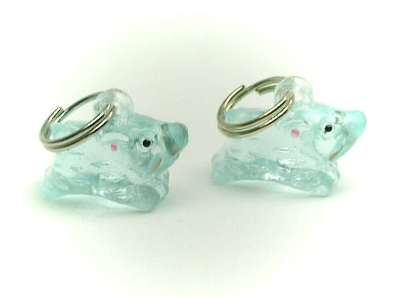 子ネズミが背中に乗った親子のネズミチャームです。色はピンクでプラスチック製です。パーツのみ金か銀をお選びいただけます。