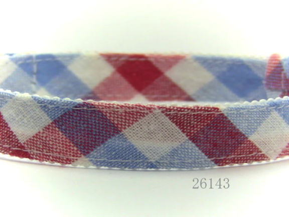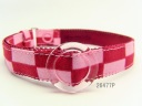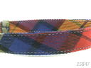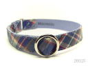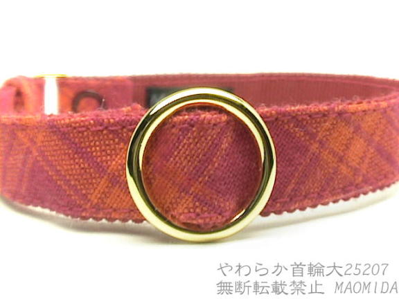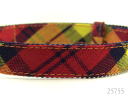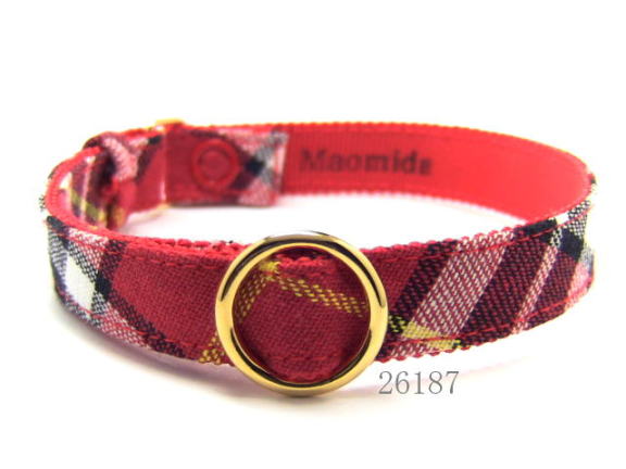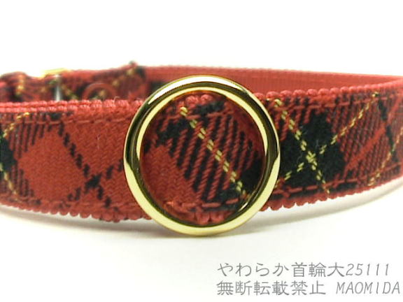 赤地に黒と緑のタータンチェック柄の首輪です。