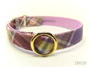 こげ茶地に赤紫、ベージュなどのチェック柄の首輪です。花型パーツ茶色を装着しています。最近こちらの花型パーツの茶色が入荷しました。すごくシックでいい色だったので早くこのパーツを使った首輪を作りたかったです。