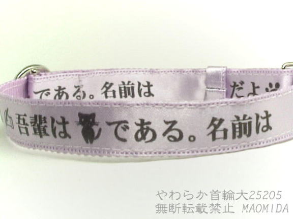 ご注文くださいました首輪にご希望の内容を印刷した布片を首輪の裏側におつけいたします。