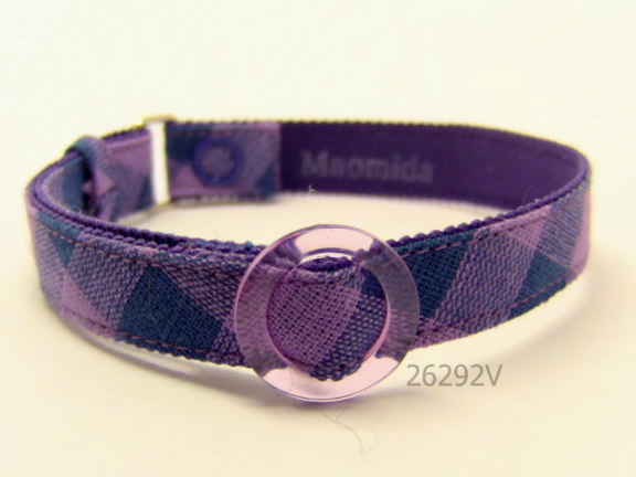 長さ/16〜29センチ 幅/1.2センチ 重さ/6グラム 素材/綿・ナイロンリボンパーツの色/紫・銀色
