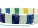 赤、水色、白の太い縞柄の首輪です。アメリカ製の素材です。この色は、アメリカ製の素材にありがちな色です。