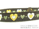 青地に赤いハートがぎっしりの柄です。ハート型パーツの青をあわせています。こちらのハート柄の素材は、ずっと前に仕入れて、なぜかなかなか首輪にする事ができませんでした。ハートの使い方が、横ならびでも、縦に並んでもなぜかしっくりきませんでした。きちんと並べれば並ぶほどハートのぎっしり感がいまひとつで・・・。そこで、斜めにハートが並ぶように裁断したところ、ハートがぎっしりな感じが出て、やっと首輪にする事ができました。