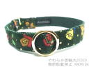 緑地に赤・金・緑などのクリスマスカラーの水玉柄の首輪です。