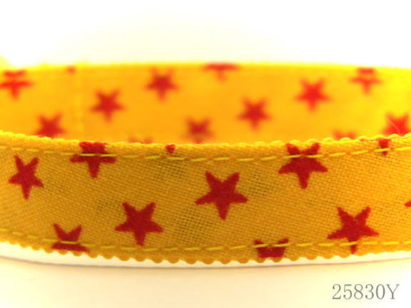 黄色地に白い星柄首輪です。カラーパーツ黄色をあわせています。