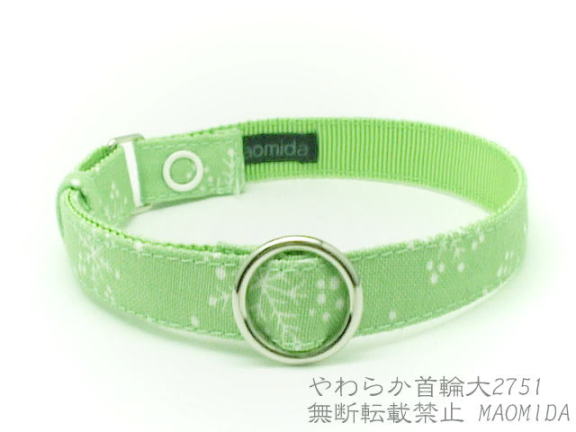●やわらか首輪・・・10ミリ幅 大は12ミリ幅 特大は15ミリ幅。長さ調節が容易でボタンで留めます。ボタンをバックルパーツまたは外れるバックルパーツ(やわらか/やわらか大のみ)に変更できます。