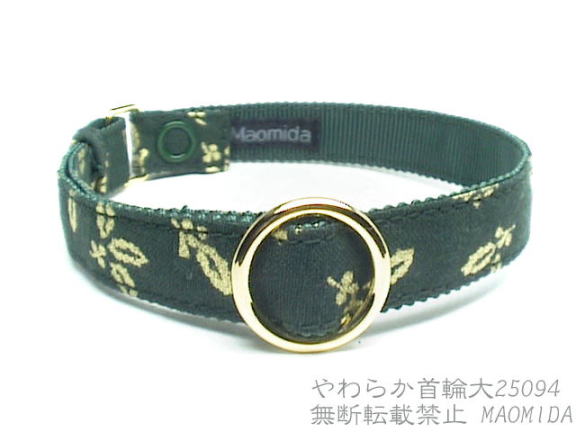 濃いモスグリーン地に濃い黄色の星柄首輪です。