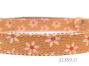 明るい茶色地に薄緑色のデイジー柄の首輪です。ほんの少しふわっとした手触りの起毛素材です。