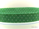 落ち着きのある深い青緑色地に白い水玉柄の首輪です。カラーパーツは青緑色をつけました。実はこの青緑色のパーツは、メーカーさんに試作で作っていただいたので、10ミリ幅の首輪にしかない色です。12幅のパーツも作ってもらおうとしたけど、工場にいろいろ事情があり頓挫してしまいました。