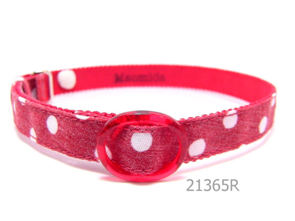 シックな赤地に白い水玉柄の首輪です。カラーパーツは赤をつけました。