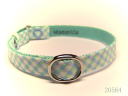 濃い緑と薄い緑色の細かいチェック柄の首輪です。カラーパーツの緑をつけてみました。
