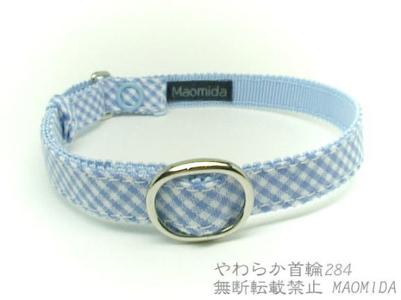 この細かいチェックのシリーズは、色がとてもシックです。派手なピンクや黄色の首輪に飽きたら、シックな首輪もつけたくなります(うちの猫ちゃん談)