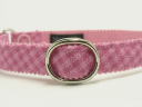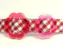 赤紫と白のギンガムチェックの首輪です。花型やハートのカラーパーツをあわせてみてもかわいらしいかも。