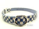 紺と青の細かいチェック柄の首輪です。カラーパーツの青をつけてみました。