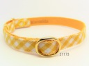 白地にオレンジと青のチェック柄の首輪です。オレンジの差し色は青が一番素敵だと個人的に勝手に思い込んでいるので、このチェックを見つけた時、これだ!と一人でガッツポーズをしました。私が猫なら、この首輪をつけたいです。ほんとです。